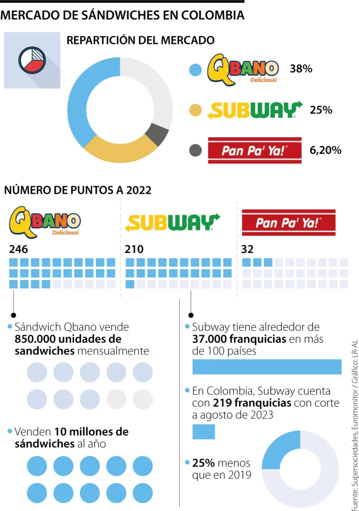 En Colombia, el sector de la venta de Sándwiches está liderado por Subway, Qbano y Pan pa’ ya. Al año, 25 millones de sándwiches se comercializan en Colombia.