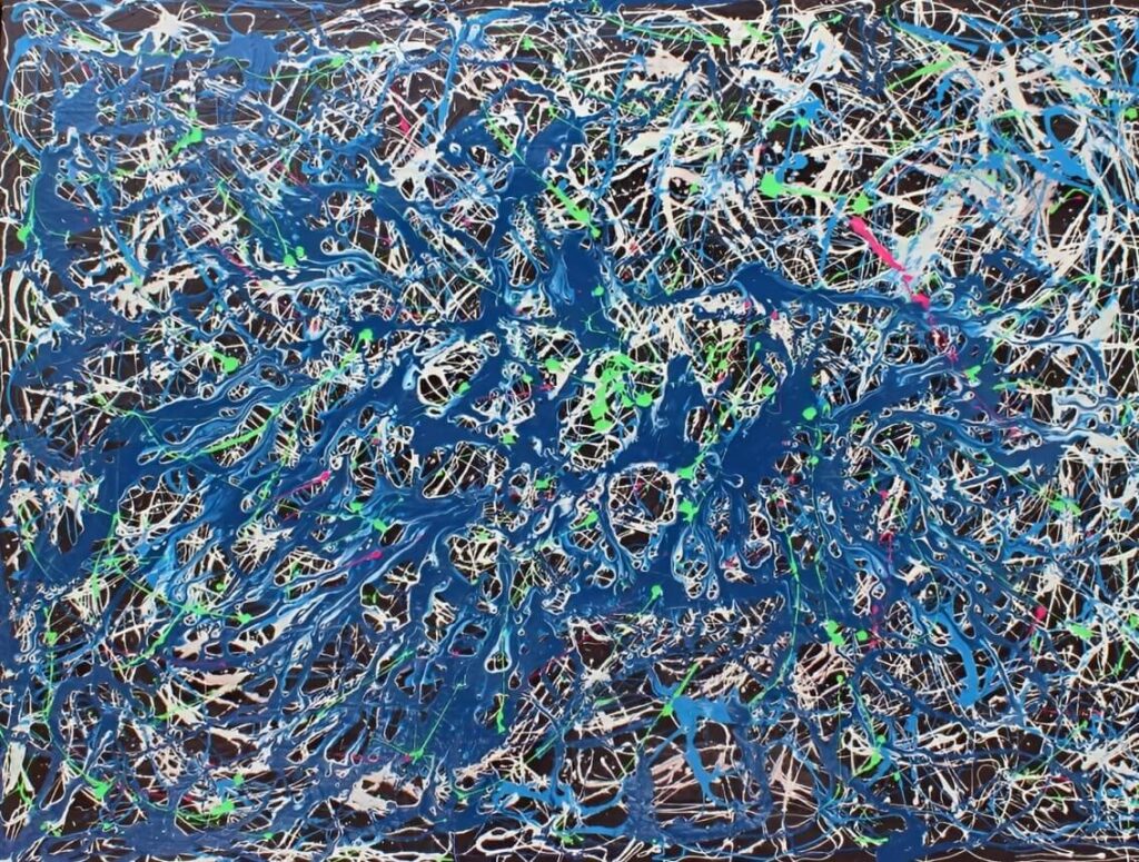 La obra de García es una explosión contestataria que canaliza la lucha colectiva de la humanidad durante la pandemia. Hospitalizado y al borde de la muerte por Covid-19, entubado durante casi un mes, García se prometió a sí mismo rescatar la memoria de Pollock si sobrevivía. Este compromiso dio vida a una reinterpretación auténtica del “dripping”, que no imita, sino que evoluciona el estilo del maestro norteamericano. Alfredo Anselmo destaca: “García lidera los homenajes a Pollock con una obra impregnada de energía, ejecutada con precisión y nunca aleatoria”. Su impacto ha sido tal que el estilo Pollock ha resurgido como tendencia global, con figuras como Ed Sheeran experimentando con esta técnica, aunque sin alcanzar la profundidad de García.