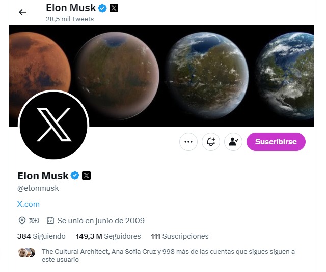 “Uno de sus primeros negocios en 1999 se conocía como X.com, que fue una plataforma bancaria por internet. Tres años más tarde, Musk hizo US$165 millones cuando eBay compró a X.com, que para entonces se había incorporado a PayPal. El multimillonario también es dueño del nombre del dominio X.com, que ahora redirige a Twitter. Musk es además el director ejecutivo de SpaceX, la empresa aeroespacial comercial de EE.UU. que fundó en 2002. Para que no queden dudas, el nombre de su primer hijo con la artista musical canadiense Grimes es X Æ A-12 Musk”. Tomado de BBC NEWS.